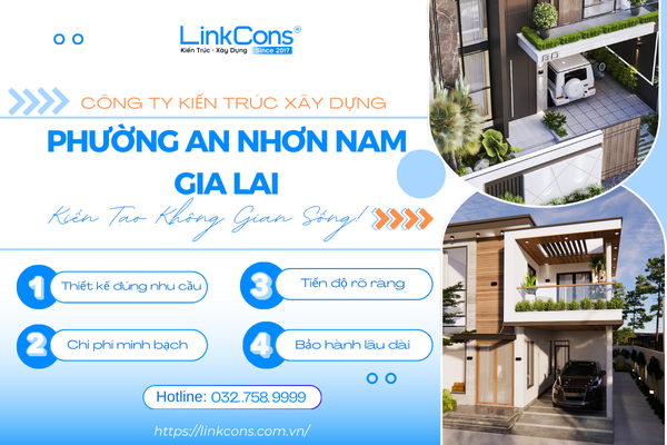 Linkcons công ty kiến trúc xây dựng phường An Nhơn Nam Gia Lai chuyên thiết kế, thi công nhà ở dân dụng, nhà phố, biệt thự, công trình trọn gói đúng pháp lý, đúng tiến độ gọi ngay : 032 758 9999 để được hỗ trợ tư vấn miễn phí.
