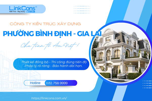 Linkcons công ty kiến trúc xây dựng Phường Bình Định Gia Lai chuyên thiết kế, thi công nhà ở dân dụng, nhà phố, biệt thự, công trình trọn gói đúng pháp lý, đúng tiến độ gọi ngay : 032 758 9999 để được hỗ trợ tư vấn miễn phí.