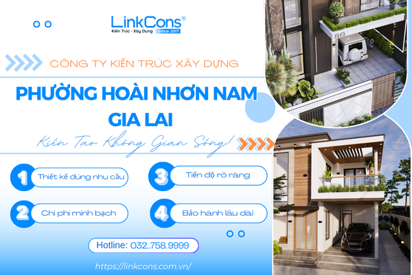 Linkcons công ty kiến trúc xây dựng phường Hoài Nhơn Nam Gia Lai chuyên thiết kế, thi công nhà ở dân dụng, nhà phố, biệt thự, công trình trọn gói đúng pháp lý, đúng tiến độ gọi ngay : 032 758 9999 để được hỗ trợ tư vấn miễn phí.