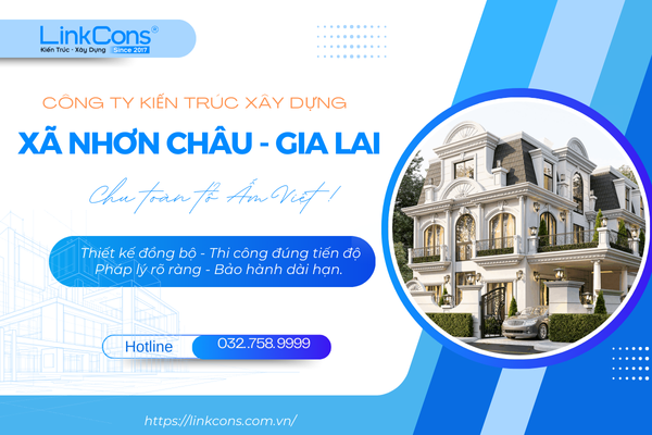 Linkcons công ty kiến trúc xây dựng xã Nhơn Châu Gia Lai chuyên thiết kế, thi công nhà ở dân dụng, nhà phố, biệt thự, công trình trọn gói đúng pháp lý, đúng tiến độ gọi ngay : 032 758 9999 để được hỗ trợ tư vấn miễn phí.