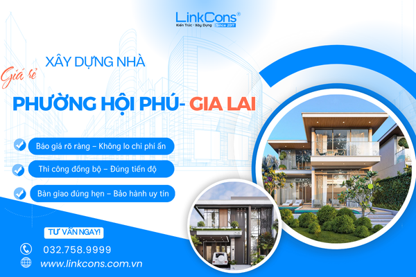 Linkcons một trong những đơn vị xây dựng nhà giá rẻ Phường Hội Phú Tỉnh Gia Lai được khách hàng tin chọn nhờ giải pháp thiết kế thi công tối ưu, chi phí minh bạch, cùng quy trình chuyên nghiệp luôn hỗ trợ nhanh chóng qua hotline: 032 758 9999