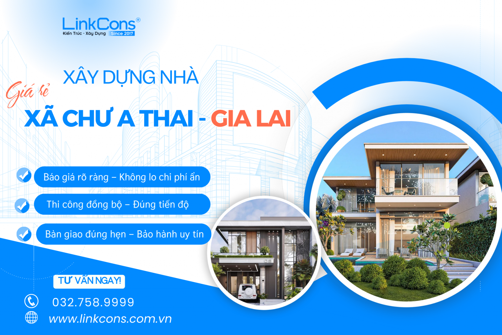 Linkcons một trong những đơn vị xây dựng nhà giá rẻ xã Chư A Thai Tỉnh Gia Lai được khách hàng tin chọn nhờ giải pháp thiết kế thi công tối ưu, chi phí minh bạch, cùng quy trình chuyên nghiệp luôn hỗ trợ nhanh chóng qua hotline: 032 758 9999