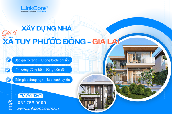 Linkcons một trong những đơn vị xây dựng nhà giá rẻ xã Tuy Phước Đông Tỉnh Gia Lai được khách hàng tin chọn nhờ giải pháp thiết kế thi công tối ưu, chi phí minh bạch, cùng quy trình chuyên nghiệp luôn hỗ trợ nhanh chóng qua hotline: 032 758 9999